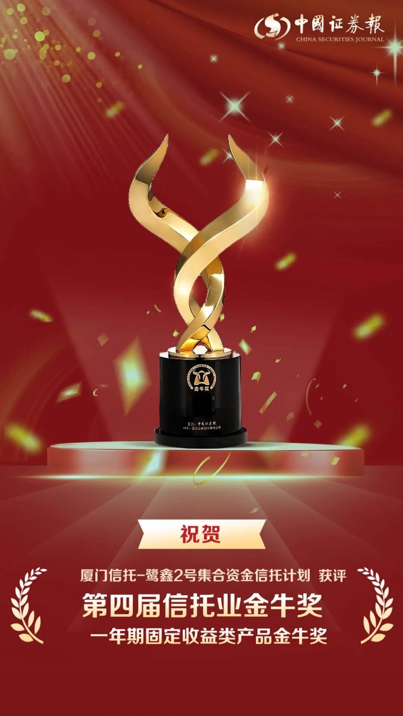 会上“第四届信托业金牛奖”榜单正式出炉,厦门国际信托管理的“厦门信托-鹭鑫2号集合资金信托计划”(简称“鹭鑫2号”)凭借出色的市场研判与稳健的风控能力,摘得“一年期固定收益类产品金牛奖”。这也是公司连续第四年蝉联该权威奖项。